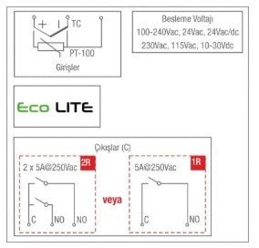 | Röle Çıkışı | 5A @ 250 Vac Rezistif Yükte 5A @ 250 Vac Rezistif Yükte |