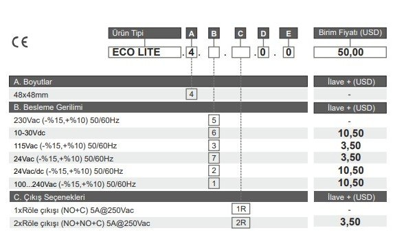 | Besleme Gerilimi | 100-240Vac 50/60Hz 115Vac (±%15) 50/60Hz 230Vac (±%15) 50/60Hz 24Vac/dc (±%15) 50/60Hz 24Vac (±%15) 50/60Hz 10-30Vdc |