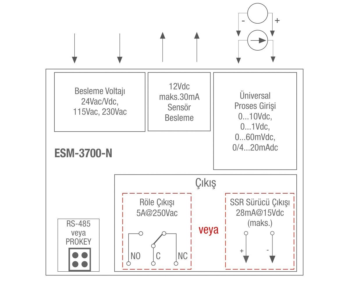 | Sensör Girişi | Yapılandırma parametreleri SelectaSe 0-10 Vdc, 0-1 Vdc, 0-60 mV, 0-20 mA, 4-20 mA seçilebilir |