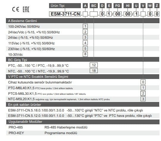| Sensör Girişi | NTC (10k ohm @.25 °C) PTC(1000 ohm @.25 °C) Kabin Sensör Girişi |