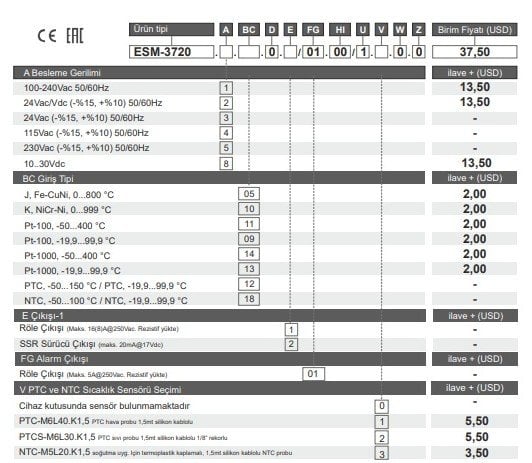 ESM-3720.5.13.0.2/01.00/1.0.0.0 Dijital PID Sıcaklık Kontrol Cihazı EMKO