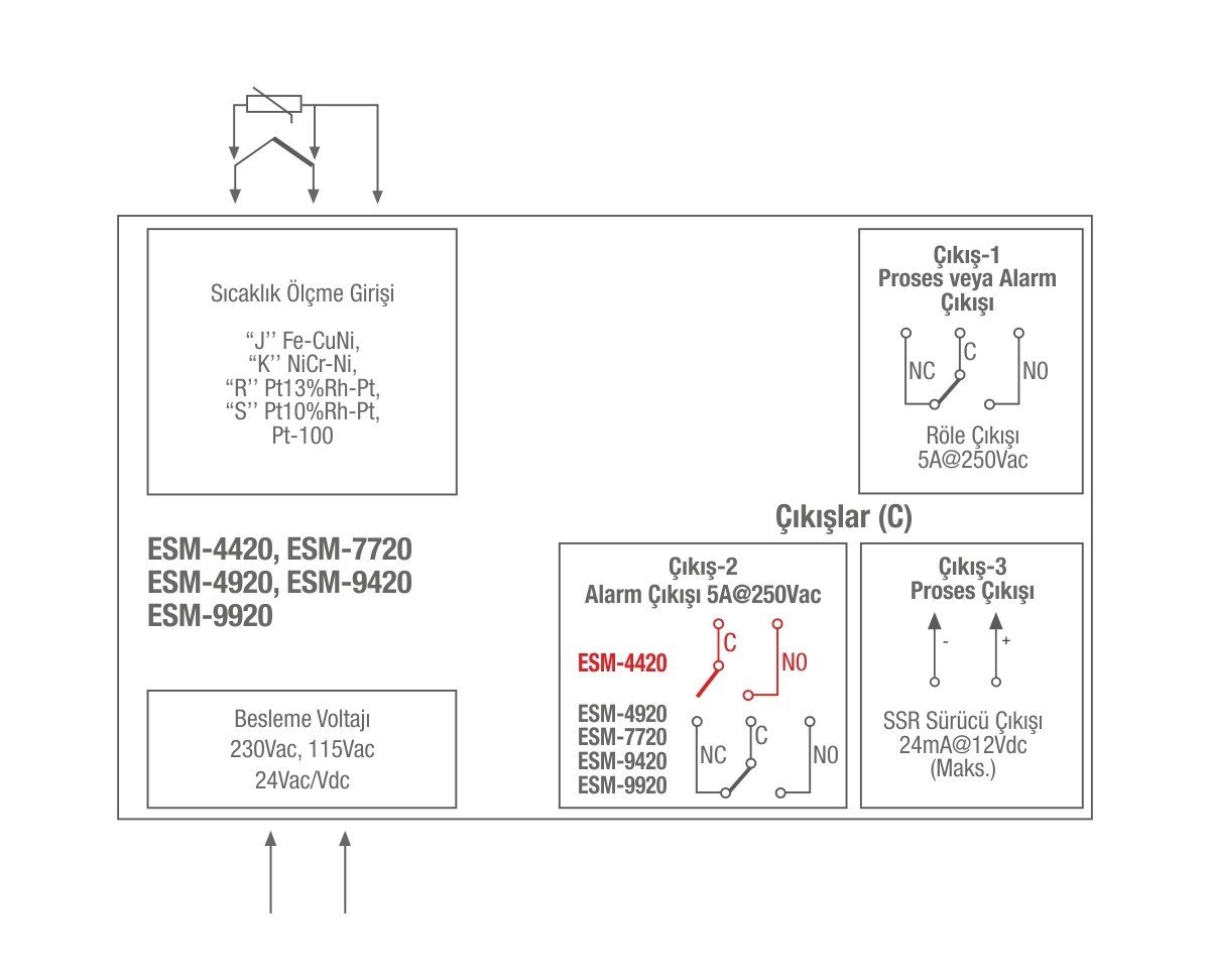 | Röle Çıkışı | Rezistif Yükte 5A @ 250 Vac Rezistif Yükte 5A @ 250 Vac (alarm Çıkışı) |