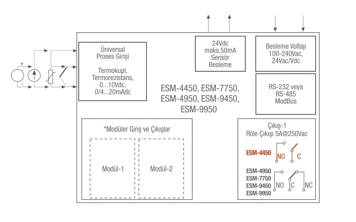 ESM-9450Üniversal Girişli PID Smart I/O Modül Sistemli Proses Kontrol Cihazı